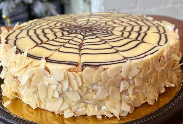 Состав: яйцо, мука пшеничная, арахисовая мука, масло сливочное, молоко, миндальные лепестки, темный и белый шоколад